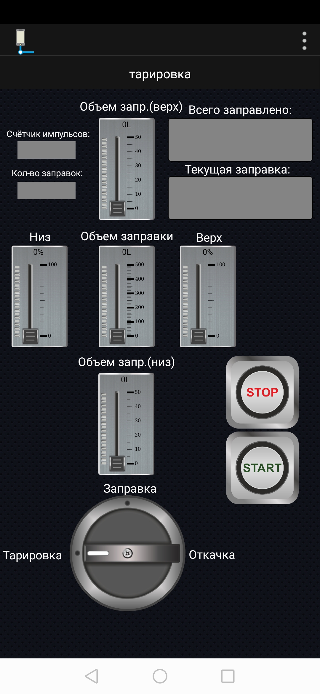 3 режима: тарировка, откачка, запрпвка