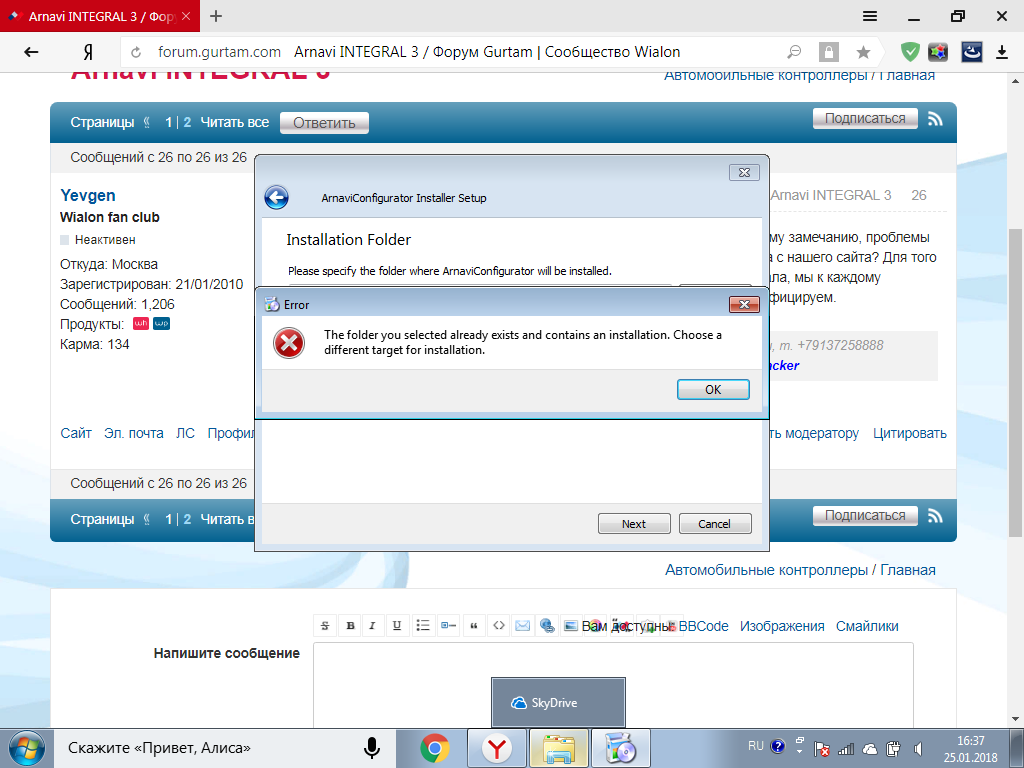 qwerty16 я лишь могу предположить что он у вас уже инсталлирован судя по сообщению, инсталлятор просит выбрать другую папку для установки, просто удалите предыдущую установку, скачайте последний дистрибутив с нашего сайта и процедуру установки еще раз повторите.