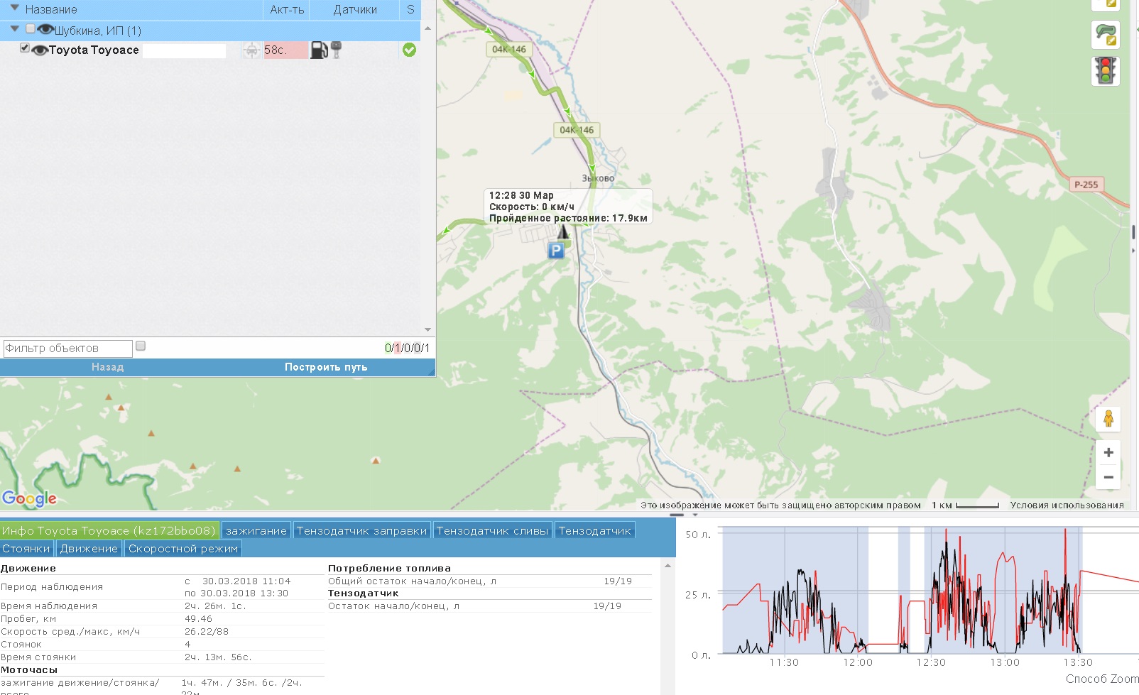 Поправка к вышеопубликованному посту. Как выяснилось машина ездила без загрузки. Сейчас наконец-то поехала в рейс, стало показывать уже что-то понятное. Присоединяю скрин по работе тензодатчика.