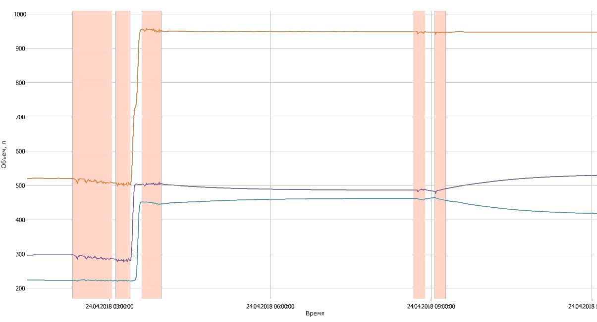 Следовательно, в данном случае проблема может быть связана либо с неправильной интерпретацией ситуации (вам говорят, что была 1 заправка на 225 литров, а по факту там был что-то другое), либо с неправильной тарировкой в рамках системы из 2 баков. Судя по графикам, более вероятным является первый вариант.