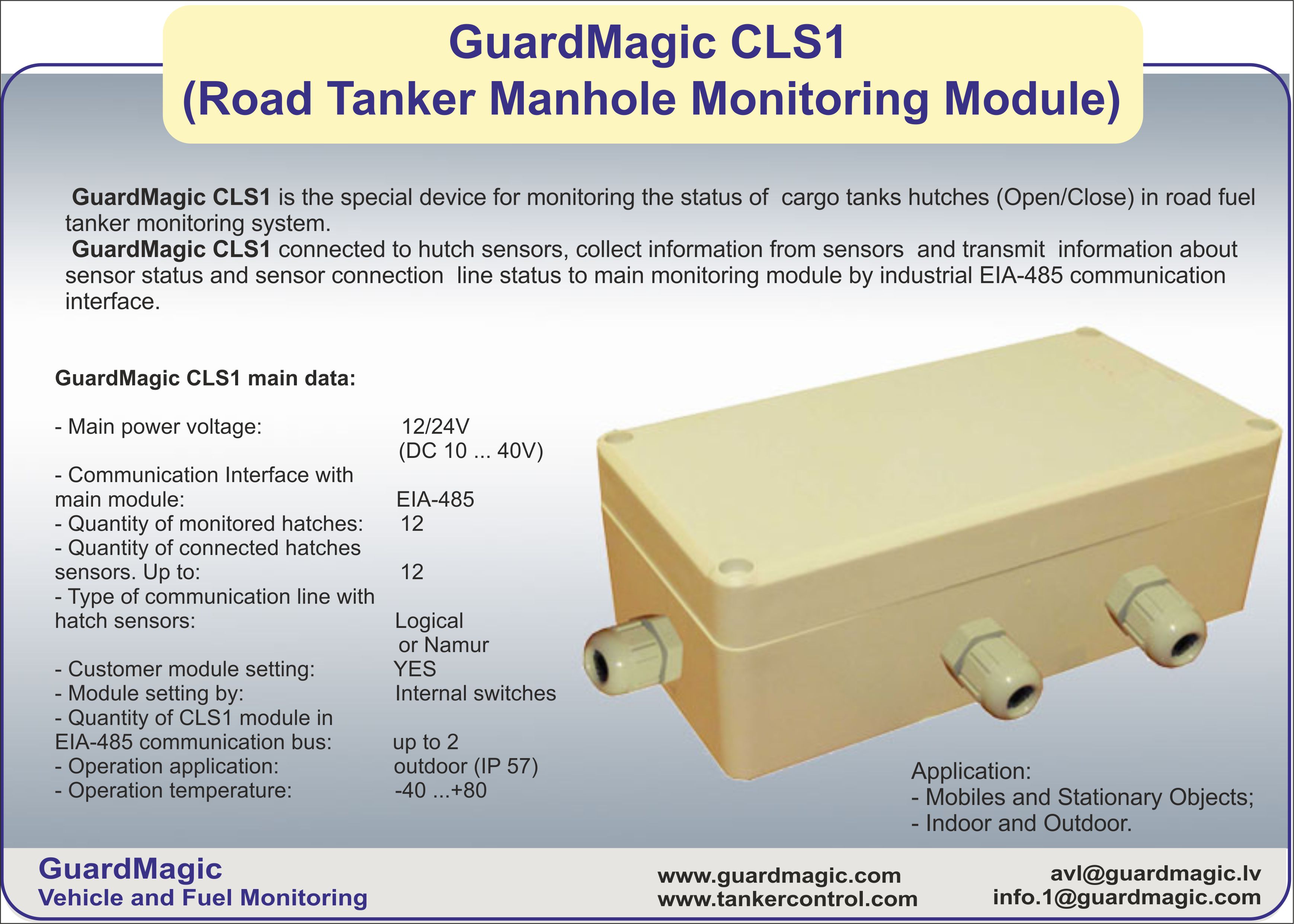 GuardMagic CLS1 is the special device for monitoring the status of cargo tanks hatches (Open/Close) in road fuel