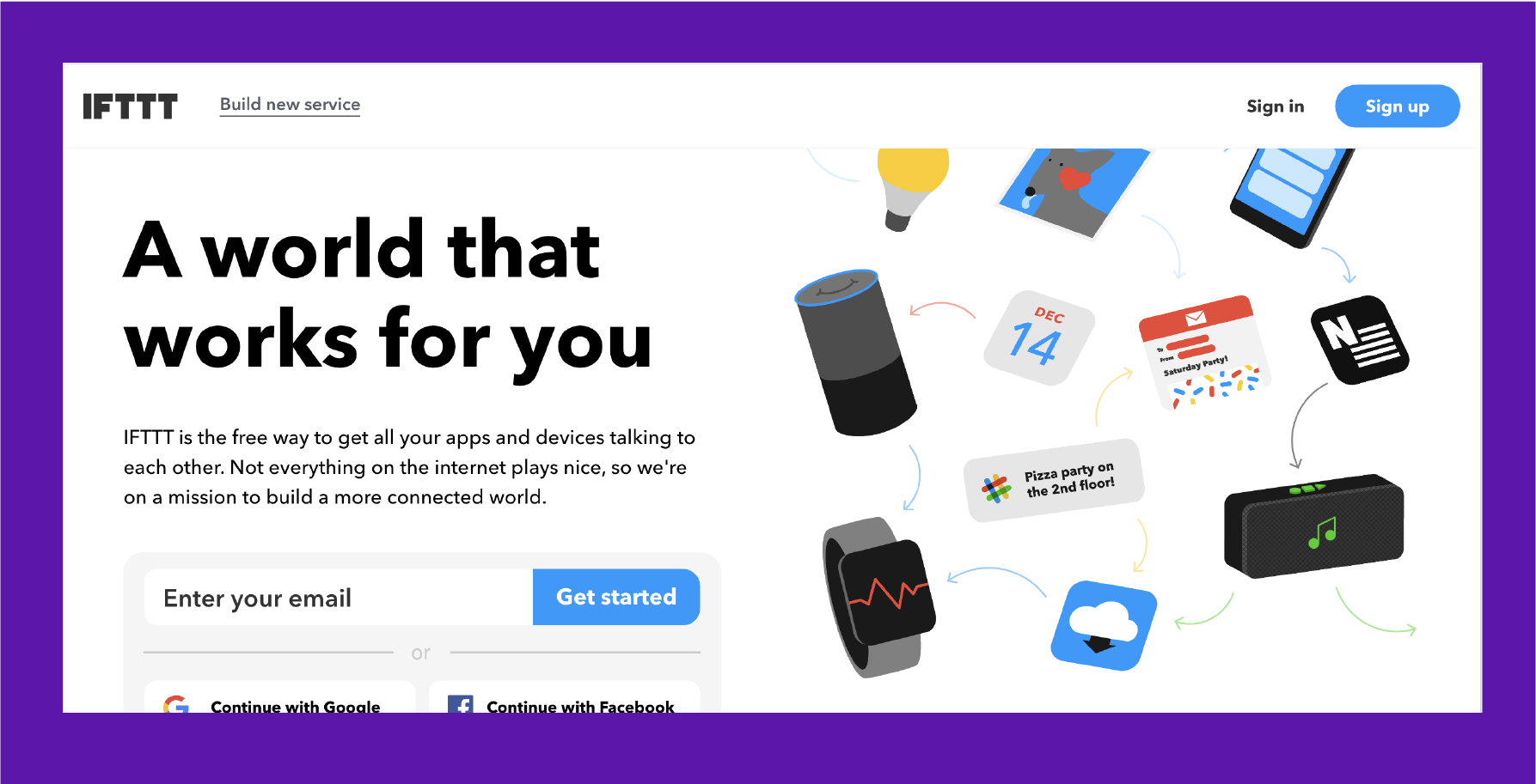 Заходим на сайт https://ifttt.com нажимаем Sign up и проходим стандартную