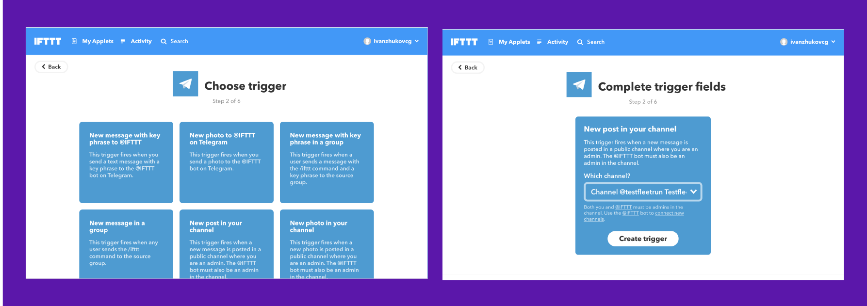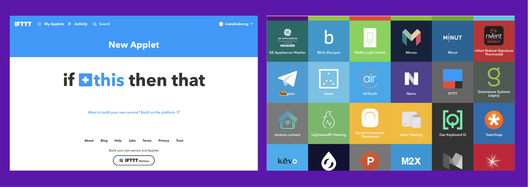 скриншоте (ифттт предлагает установить аплеты) нажимаем create applet, либо если телеграм