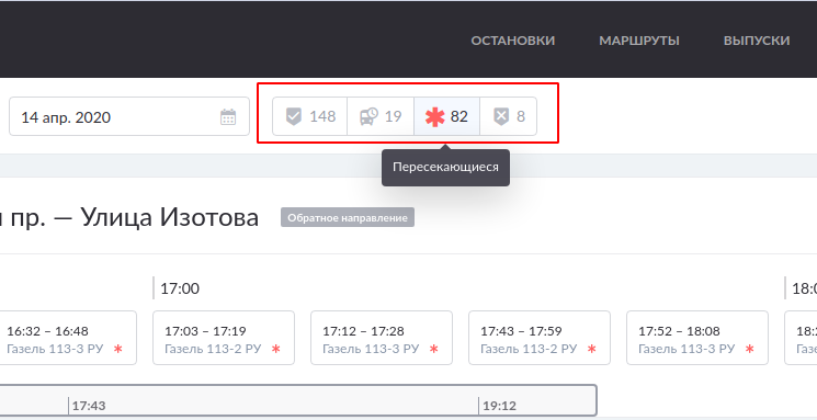 На текущий момент диспетчеру придётся перебирать всю маршрутную сеть, чтобы понять с каким именно расписанием (рейсом) происходит пересечение.