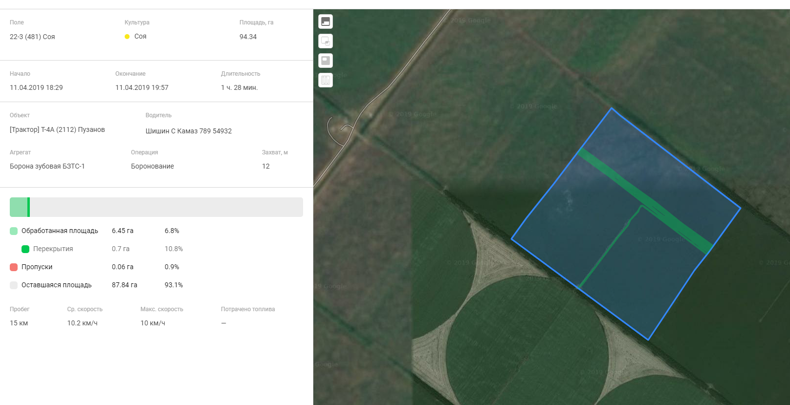Если посмотреть на весь трек за определенный день и регистрируемую за тот же день работу на поле, то можно увидеть разницу. Поля находятся впритык друг к другу и некоторые операции делаются на них подряд, без разделения.