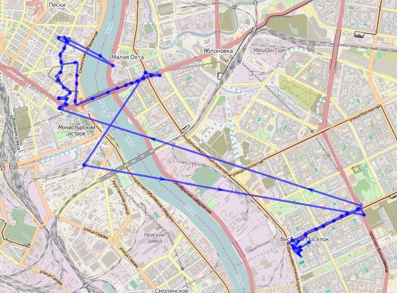 Хотя при входе в помещения есть выбросы координат, пока от них избавиться не получилось. катаю его дальше))