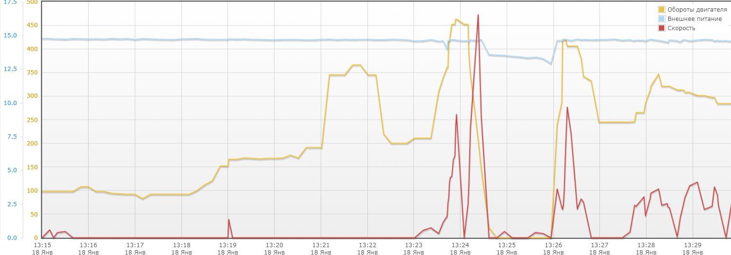 Уважаемые коллеги. Как и обещал прилагаю фактическую информацию по датчику вибрации, с целью снятия информации о текущей нагрузке двигателя. Прилагаю фото датчика, фото монтажа, а так же фото графика. На графике мы видим работу двигателя на холостых, затем на повышенных оборотах, и далее сам факт движения автомобиля.