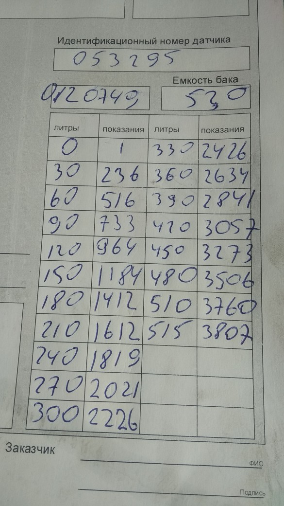 В любом случае выкладываю нашу тарировку (длина ДУТ 700 мм).