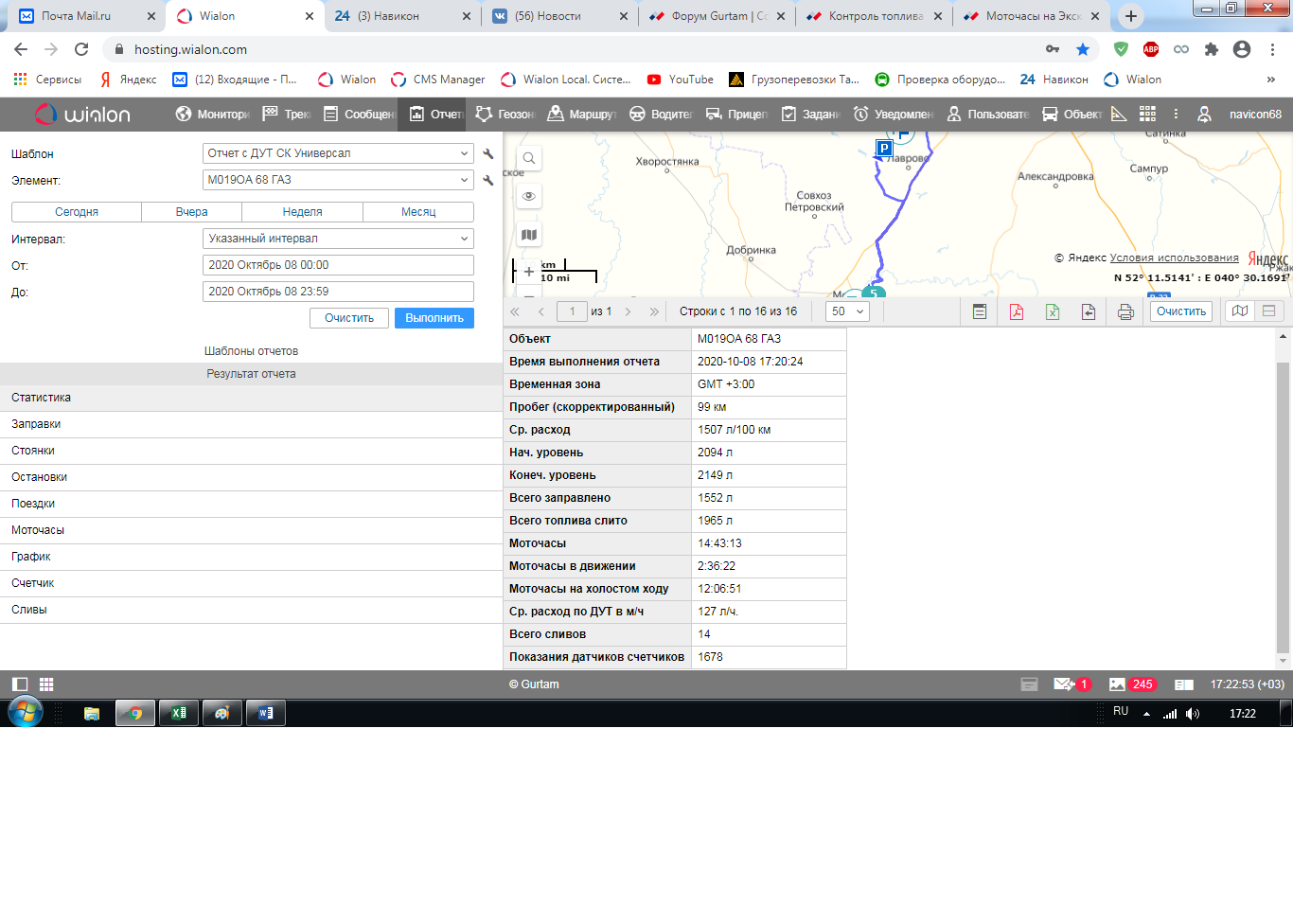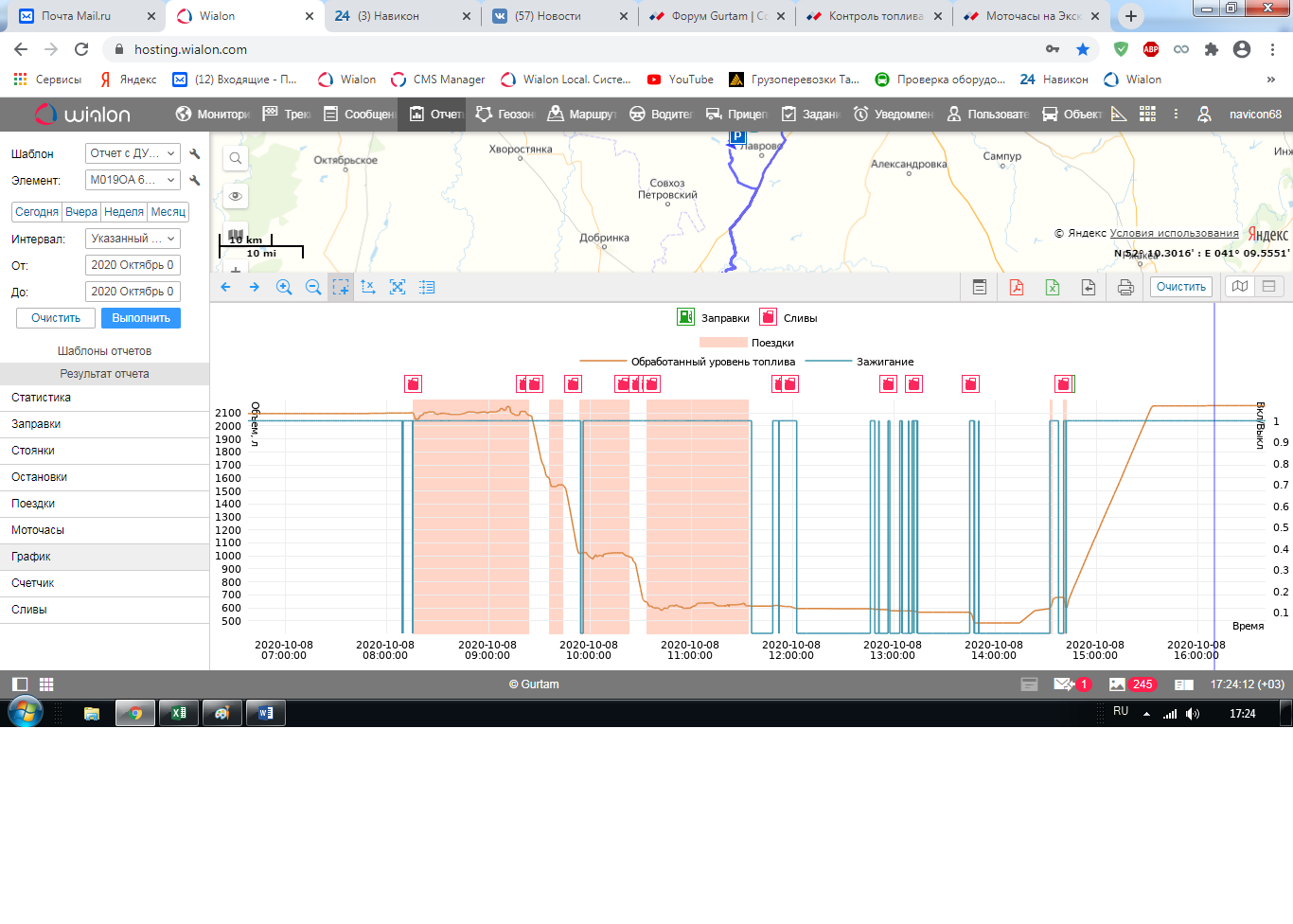 Есть бензовоз с ДУТ Омникомм LLS4 в цистерне и УСС на счетчике.