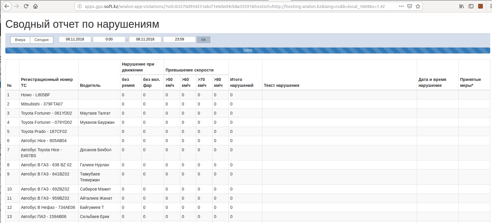 Все нарушения, которые совершили водители транспортного средства, попадут в этот отчет, включая превышение скорости, сливы и др.