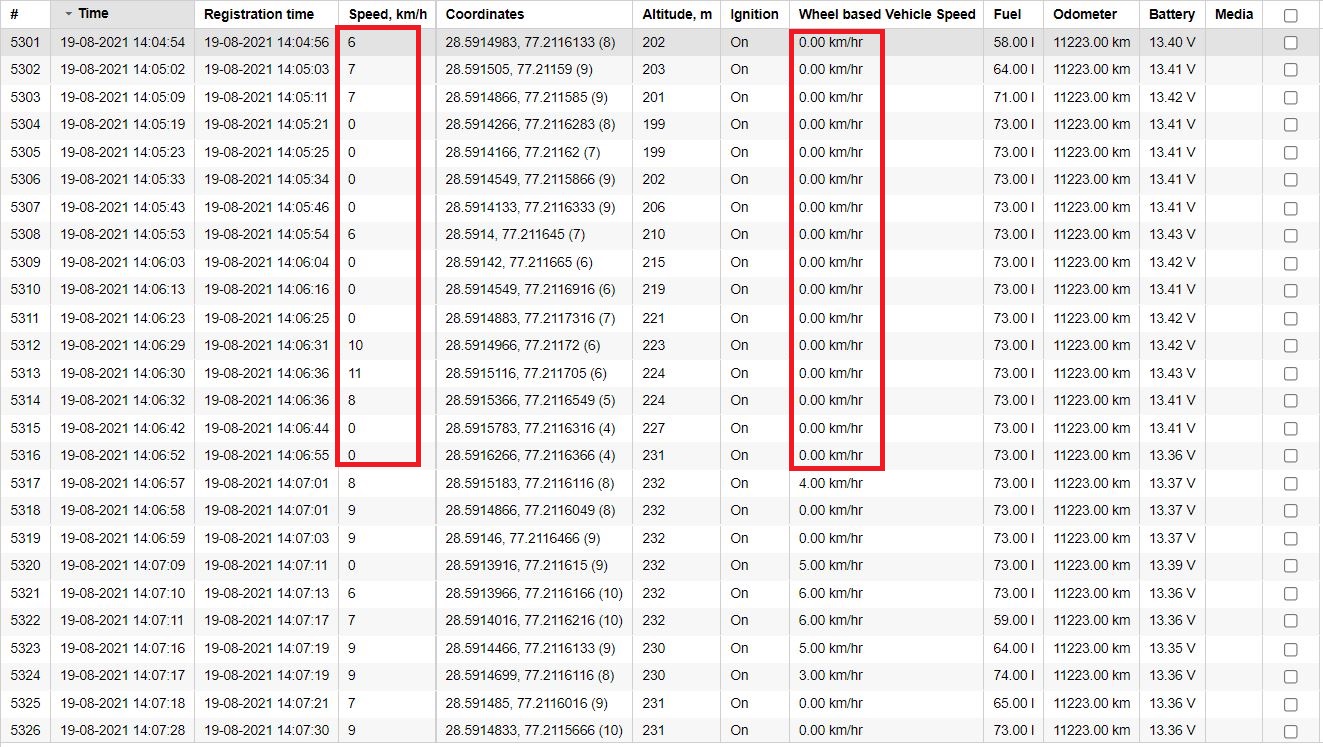 As the equipments get the speed by GPS, it happens sometimes that the speed sent to Wialon is incorrect, you can see for example in the screenshot the difference between the speed by GPS and CANBUS. As you can see in the example, the tracker have 10 sats, so there is no option that a filter could ignore this messages, and as this is very frequently in large scale, there is no way to be deleting every message with error. If I'm not wrong, I've already saw other partners asking for this feature and other partners that asked for a new unit of speed: