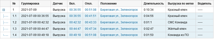 - Фиксация в ПО выгрузки по команде