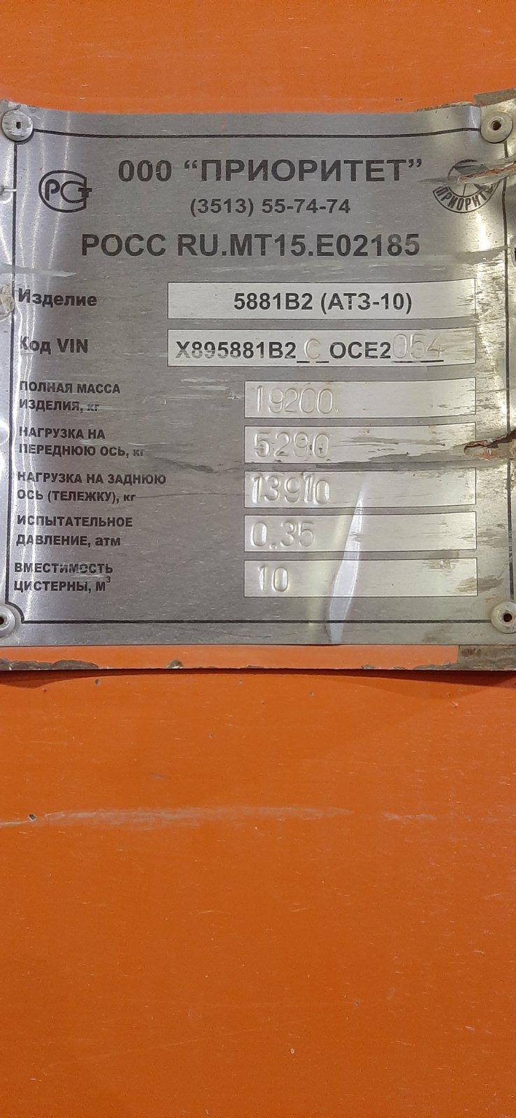 Таблички цистерн только есть. Обе овальные и приплюснутые. 8 тонн (на базе Камаза) ш (215 см) в (121 см) д (382 см)
