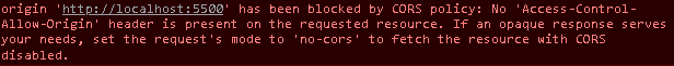Access to fetch at 'https://hst-api.wialon.com/wialon/ajax. … %TOKEN%22}' from origin 'http://localhost:5500' has been blocked by CORS policy: No 'Access-Control-Allow-Origin' header is present on the requested resource. If an opaque response serves your needs, set the request's mode to 'no-cors' to fetch the resource with CORS disabled.