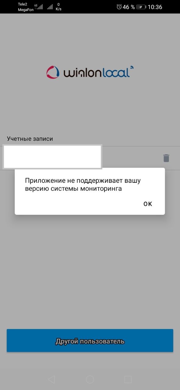 Вы пытаетесь подключится к ПО Wialon Local, релиз которого состоялся более 3 лет назад. Поддержка мобильного приложения для Wialon Local осуществляется 3 года. Если Вы используете ПО релиз которого состоялся более 3 лет назад - вам следует обновить ПО Wialon Local до актуальной версии.