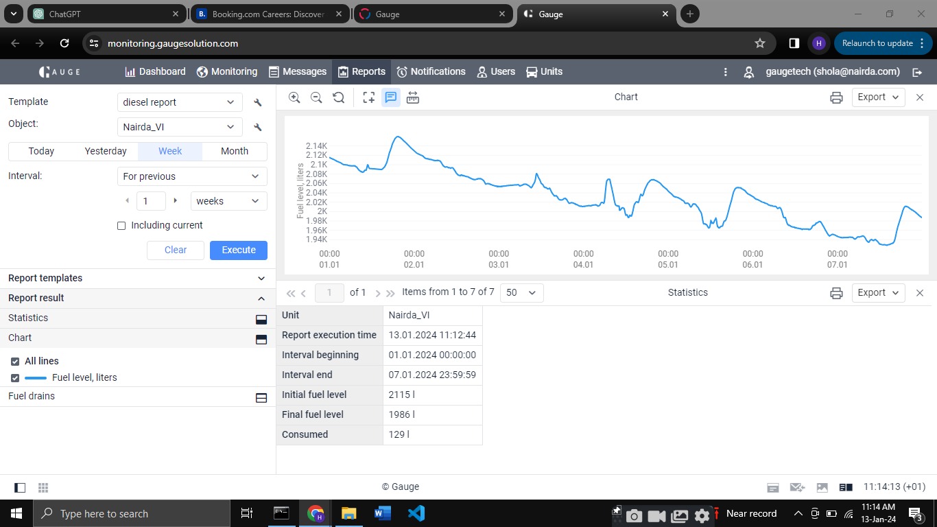 The fuel level at the end of daily consumption becomes higher than the level at the start of the day.