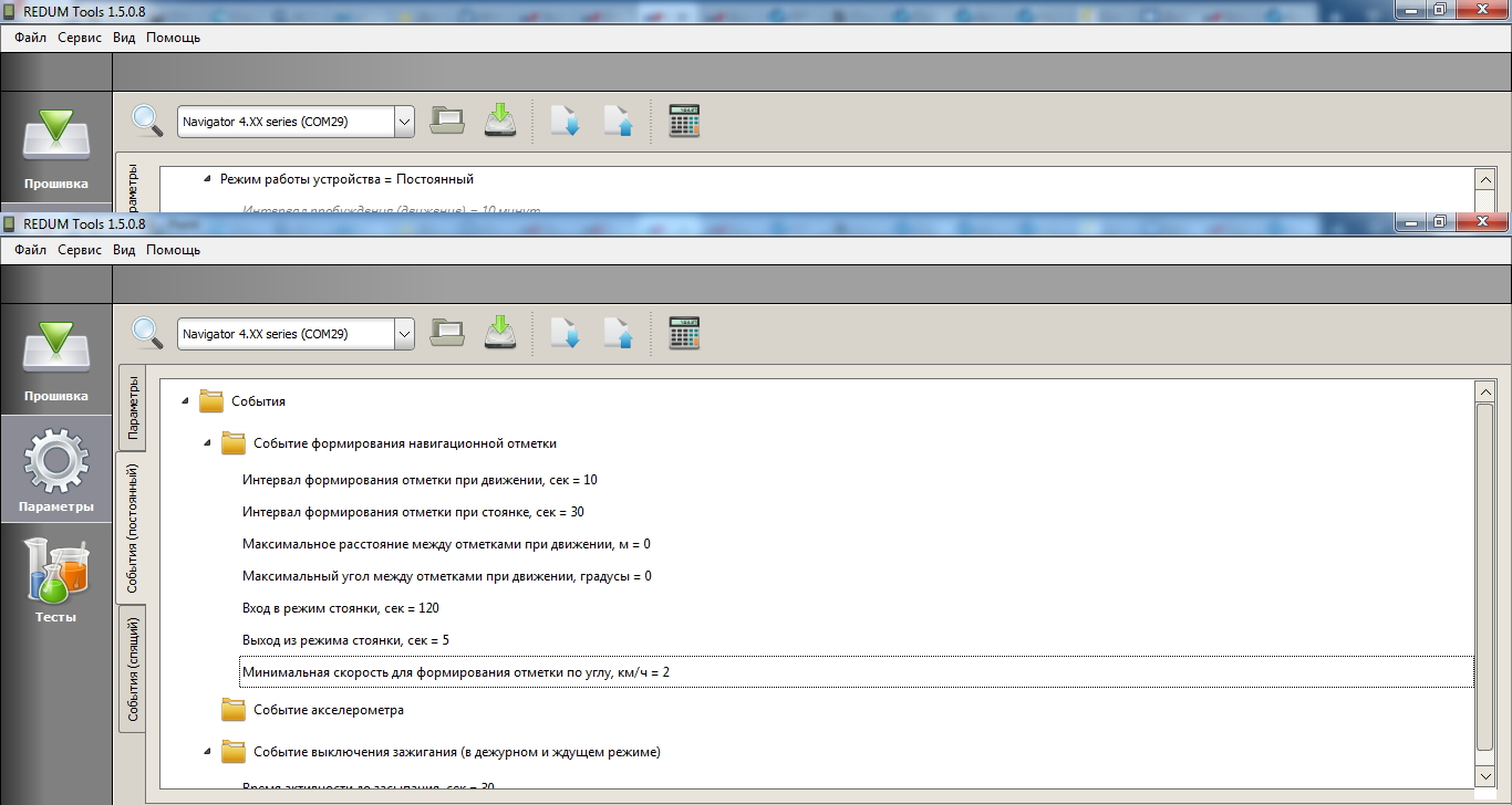 И ещё: ни в одной инструкции не удалось найти описания настроек параметров "События (постоянный) и События (спящий)" программы REDUM Tools (в моём случае версия 1.5.0.8). Буду признателен за расшифровку настроек.