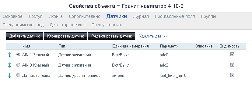 Итого для Гранит Навигатор 4.10 подобрал след. провода для отображения сигнала зажигания и топлива (см скрин)