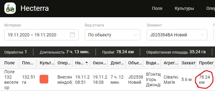 В Hecterra, когда трактор отъезжает далеко от поля, этот пробег в обработку не включается (но в общее время такой "отъезд" включается, если трактор возобновил работу на поле в рамках той же смены водителя или тех же суток).