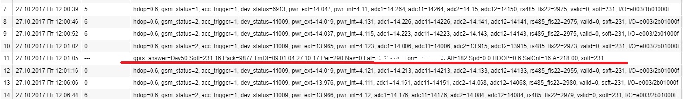 4. Трекер периодически (достаточно часто) посылает сообщения, в которых параметр bat1 отсутствует.