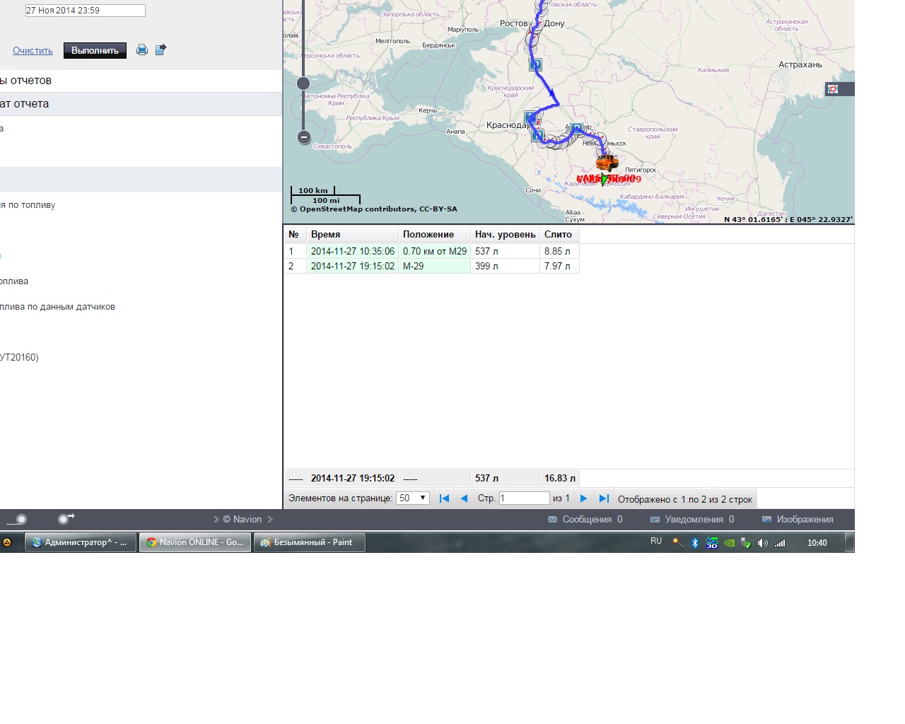 Здравствуйте, помогите определить были сливы или нет. Машина MAN, в настройках минимальный порог слива стоит значение 7 л. За выбранный период времени 27.11.2014г. показывает 2 слива, но я не уверен слив ли это. Как определить по графику не понимаю. МОжет это скачки топлива.