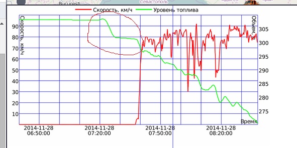 Зря вы так категорично. (Это я про первый график, без скорости) Не так давно поймали целый выводок таких хитрецов - экскаваторщиков, сливали по 10 литров несколько раз в день.