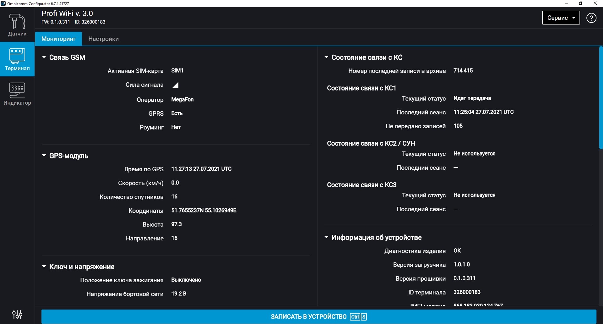 (не забудьте, что при работе ДУТ LLS-AF с регистратором Omicomm profi