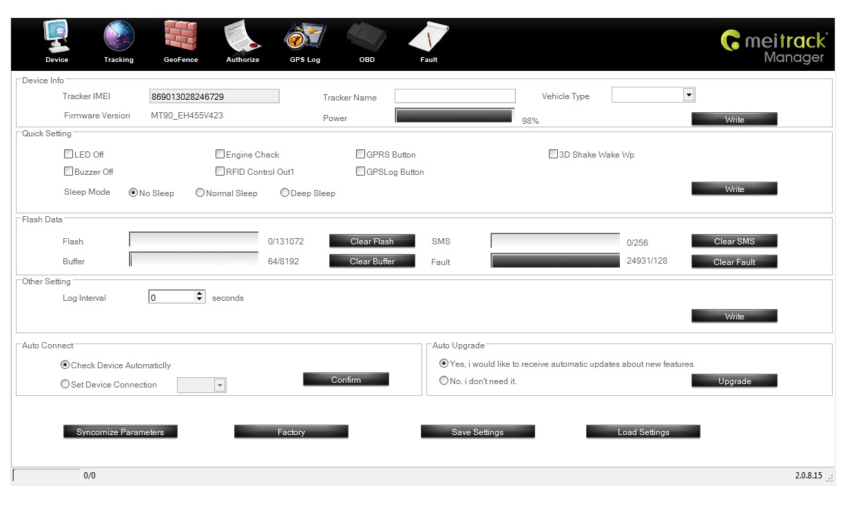 трекер настраивается смс-командами (см руководство пользователя и протокол смс), либо через Meitrack Manager (может есть на торрентах, на оффсайте доступ по паролю)