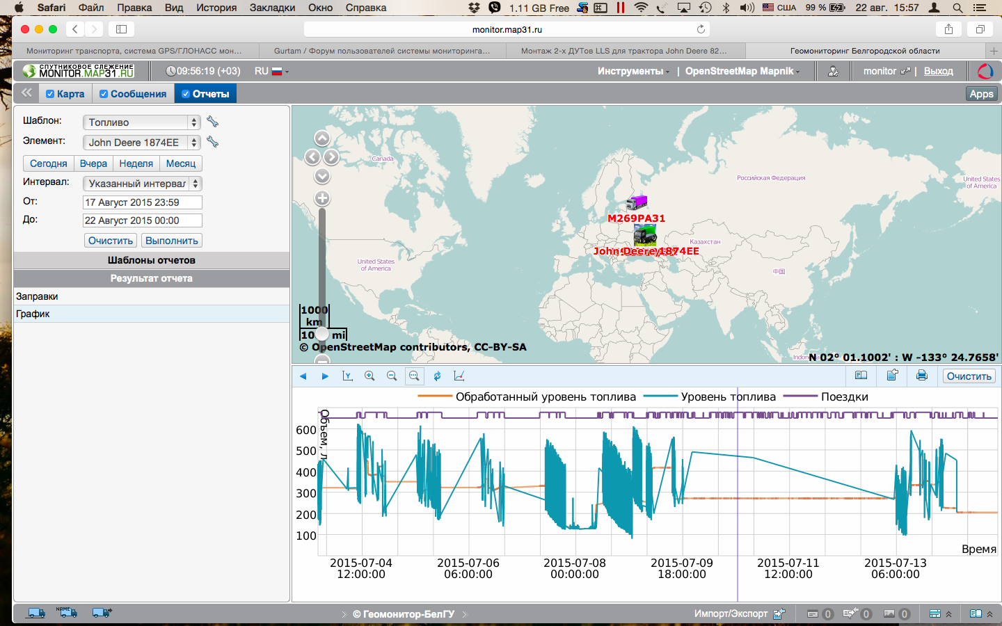 Давича ставили 2 Омникома на John Deere 8ку. Достаточно долго искали место для установки, решили сделать 2 люка в полу трактора. Заказчик был не против. Вообщем глаза боятся, а руки делают. При тарировке возникла небольшая проблемка. Проливы делали быстро и не учли момент с перетеканием топлива (очень интересная форма) из одной половины бака в другую, пришлось выкинуть интервал (ниже на графике). Ссылка на Ютюб (страдания трактора)