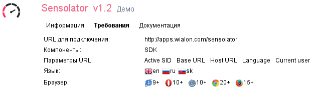 1. Учитывая специфику приложения, именно стационарных объектов, вход на сам сайт мониторинга, в большинстве случаев - просто лишняя операция, которая отнимает время, т.к. объект все же стационарный и его местоположение на карте не особо интересно. Предлагаю ввести возможность авторизации напрямую, в самом приложении, т.е. допустим, переходя по ссылке: http://apps.wialon.com/sensolator пользователь вводит логин и пароль и попадает в приложение, минуя сайт мониторинга. При необходимости перейти в мониторинг, нажимает кнопку "Мониторинг" и попадает на нужный сайт мониторинга, уже без авторизации;