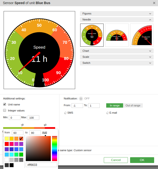 2. Необходима возможность ручной настройки диапазонов измерений/отображений, внутри которых задаются цветовые шкалы, так же для всех виджетов;