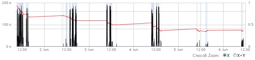 На текущем графике посмотрите с увеличением с чего начинается следующее начало движения по уровню топлива ..