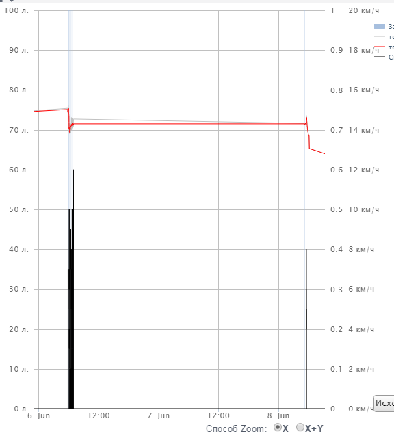 Ок, понаблюдаем.  По данным, да, я ошибся, после отключения массы, данные с ДУТа не идут, а прибор работает еще некоторое время пока не разрядит свой аккумулятор. Немного беспокоит нервность графика, при установке ставили 32 секунды как и рекомендуется.