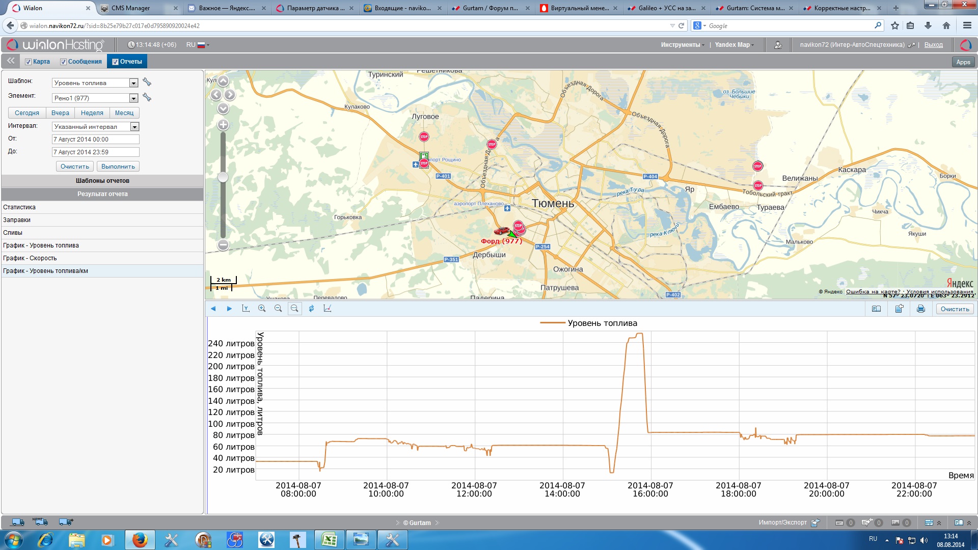 Чем объясняется такая плавная заправка , а потом очень неплавный расход топлива 7.08.14 с 15 до 16ти часов?