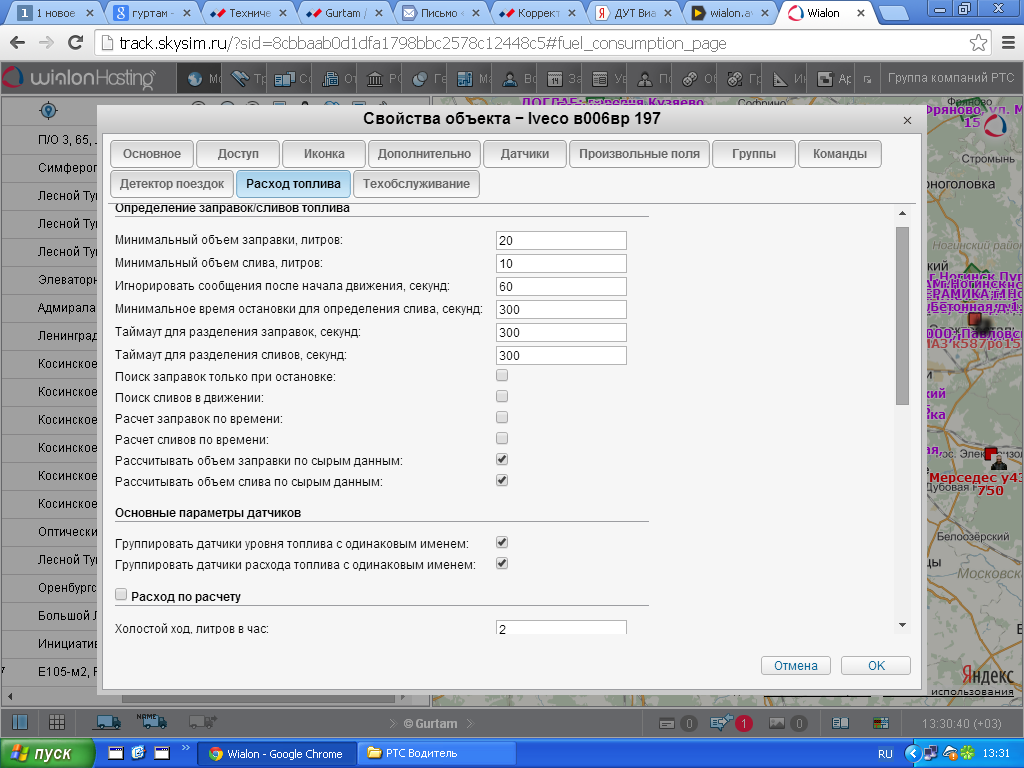 Ситуация такая клиент поехал с мерником заправлять 200 л. на заправку. Заправили, звонят мне, говорят что врет система, показывает 193 л. Мол для погрешности слишком большая разница. Я покопался в настройках, и обнаружил,что если убрать галочку "расчет заправок по времени" , то в графе заправлено появляется цифра 198 л. (то есть уже ближе к истине, ну с учетом погрешности). Разобрались с этим. На следующей неделе у них опять рейс, машину заправляют, я смотрю у себя - показывает 101 л заправлено. Звоню им,спрашиваю совпадает ли, они говорят Да. Я успокаиваюсь, но все равно начал смотреть при разных настройках. И вот что получается: если не стоят галочки "поиск заправок при остановке" и "расчет заправок по времени", то показывает 101 л. заправки, если поставить обе галочки, то показывает 95 и 48,15 литров. Если убрать галочку расчет по времени и оставить поиск заправок при остановке, то показывает 101 и 25,65 литров. В чем может быть проблема, скажите пожалуйста как настроить так правильно,чтобы не переживать, что система показывает неверные данные?