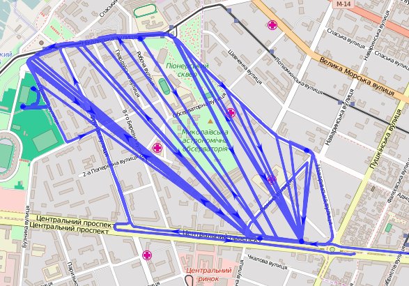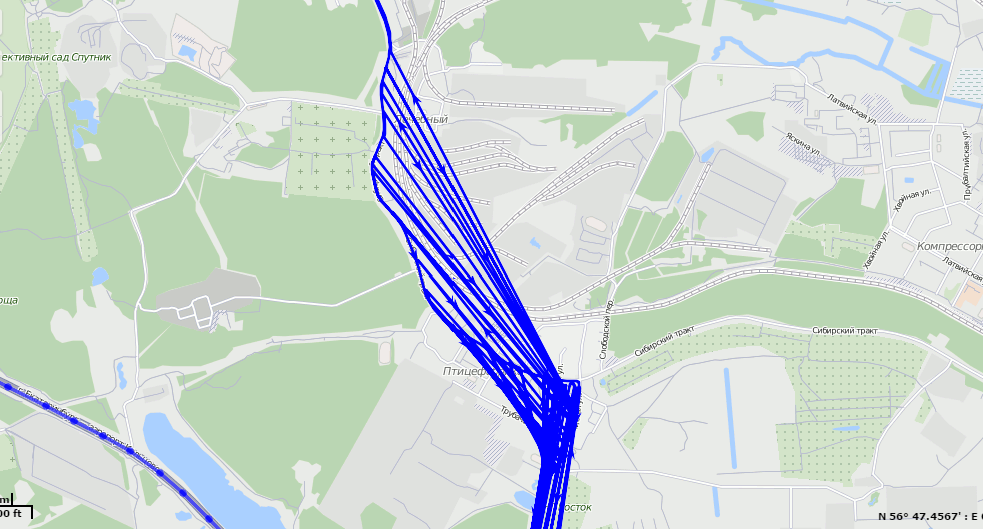Количество спутников отличное, HDOP прекрасный, а трек по полям и теплотрассам проходит. И ладно бы одна точка, так целый набор координат проходят вне дороги.