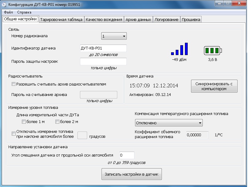 Датчик имеет встроенные часы реального времени и внутреннюю память. Все измеренные данные датчик хранит в собственной памяти за последние 60 суток. Способность датчика работать без терминала существенно снижает начальные затраты на установку систем контроля топлива и качества вождения автотехники.