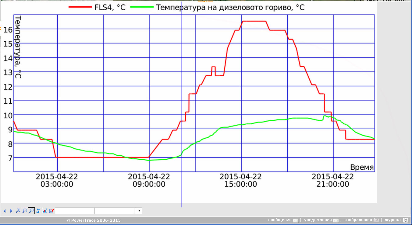 - зеленый - данные с датчика темературы, расположенного внутри цистерны и измеряющего непосредственно температуру топлива