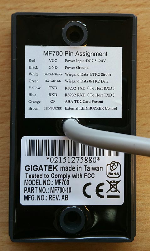 We currently have a MF700 reader from GiGatek (see image) that can comminicate over RS232, but sofar we don't have any luck to recieve any data in wialon with this setup.