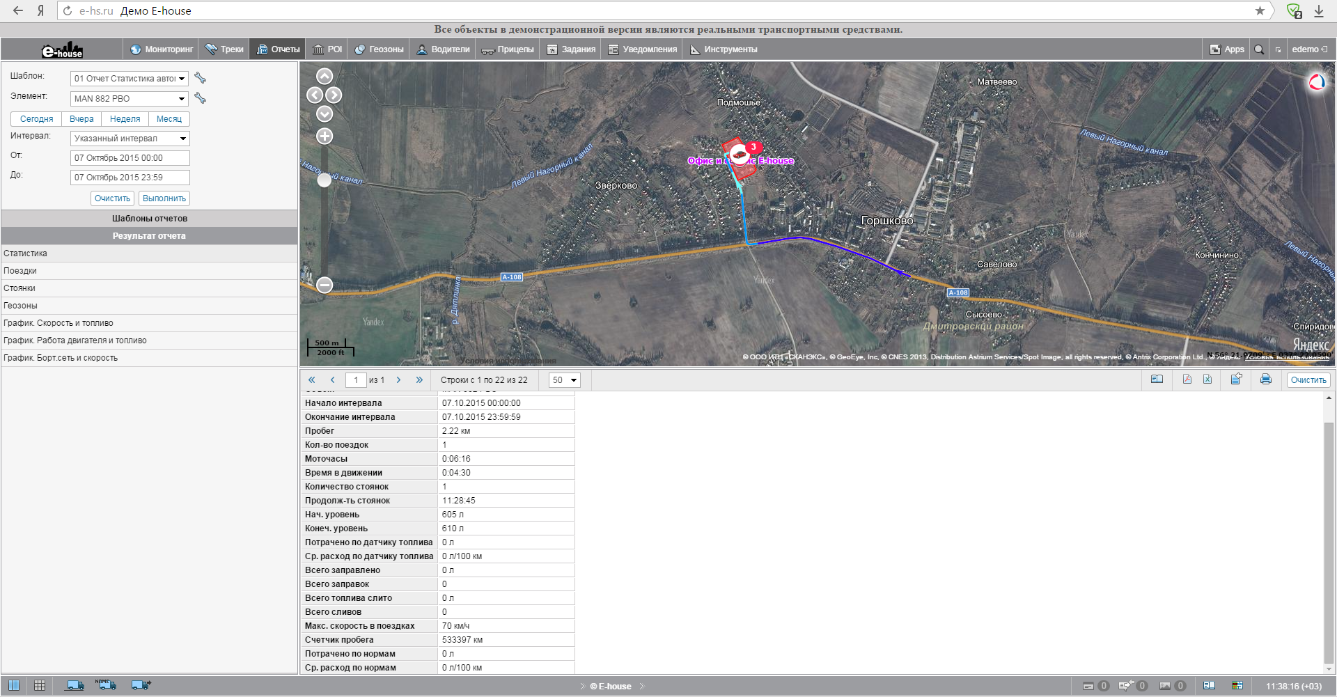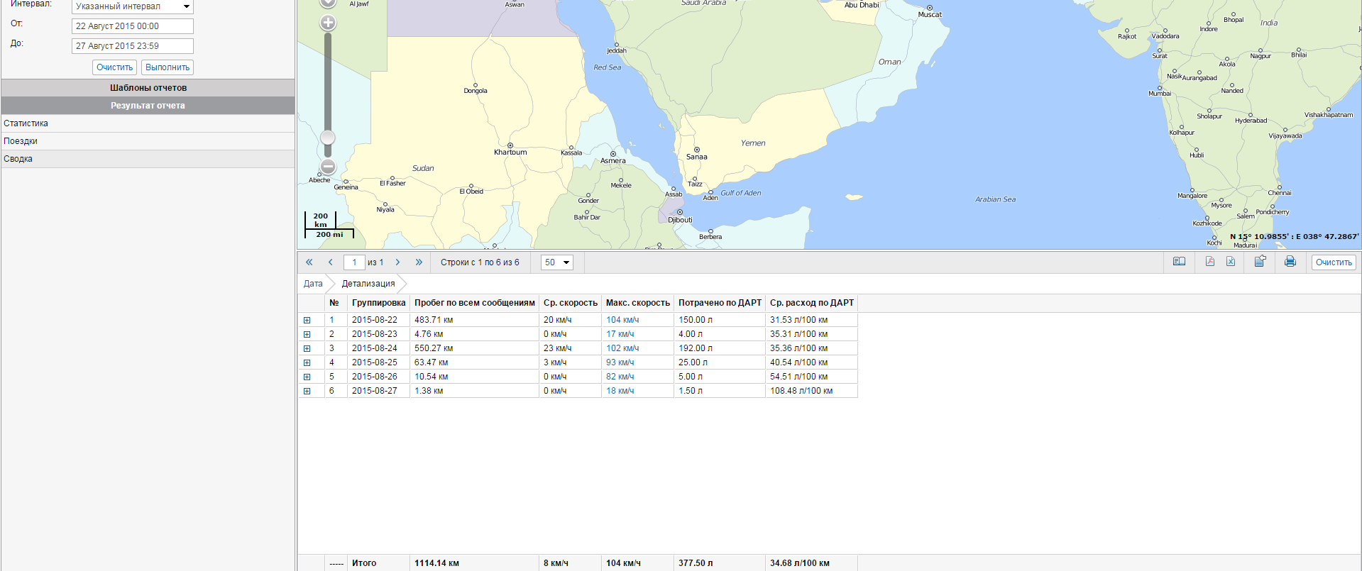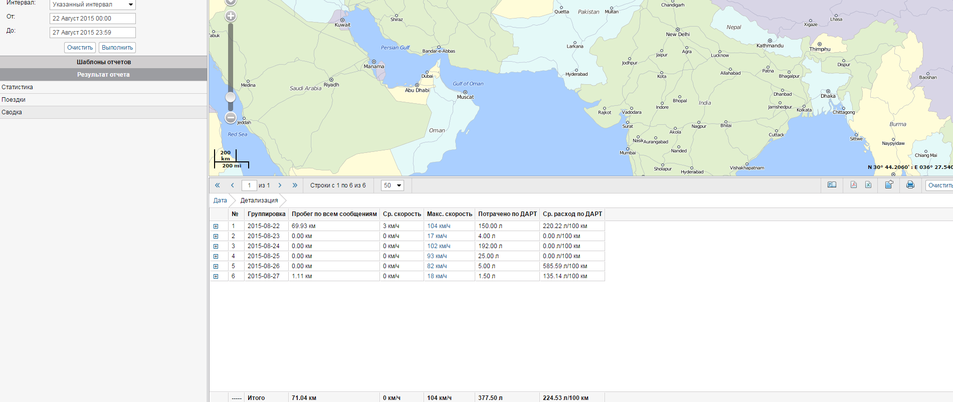 Вот пример: авто двигалось 5 дней, на 1 дне вышел спидометр из строя и вот результаты одного и того же отчета: