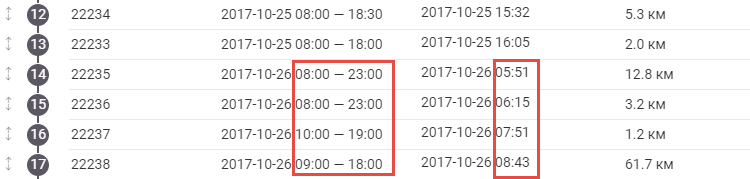 "Информация по выполненным маршрутам отображается в течение суток, после