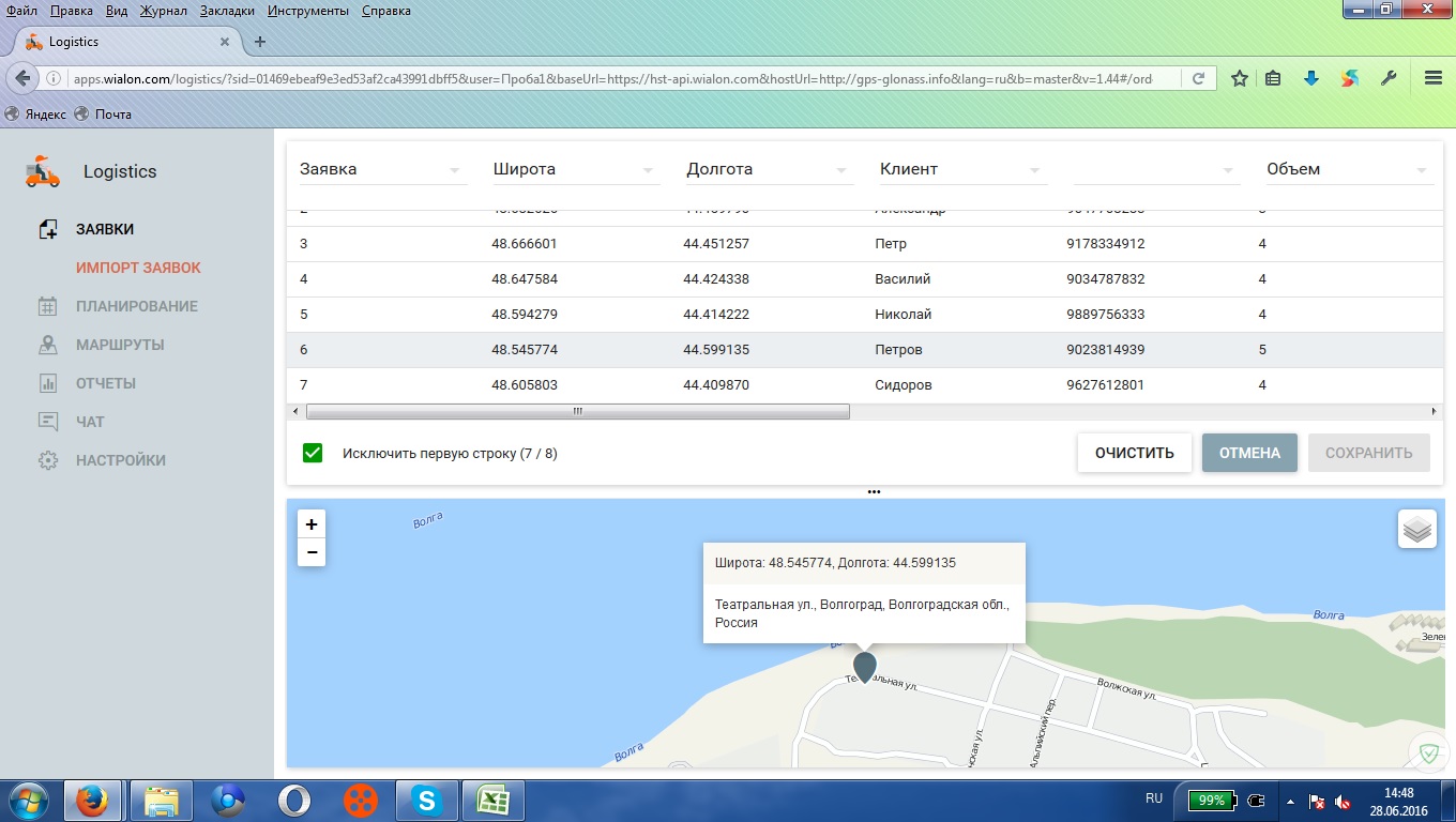 Здравствуйте, а можно будет добавить при импорте заявок, чтобы они обрабатывались не по адрес Gurtam maps а по тем базам карт которые выбраны в настройках.