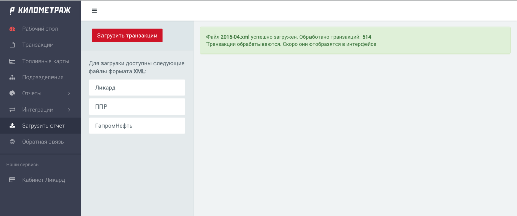 Компания Километраж, официальный дистрибьютор топливных карт ЛИКАРД, разработала аналитический сервис, позволяющий интегрировать ведущих операторов топливных карт с Wialon Hosting. Аналитический сервис автоматически сопоставляет транзакционные отчеты с данными системы Wialon Hosting и выявляет сомнительные транзакции, что дает возможность своевременно реагировать на возможные махинации с топливом.