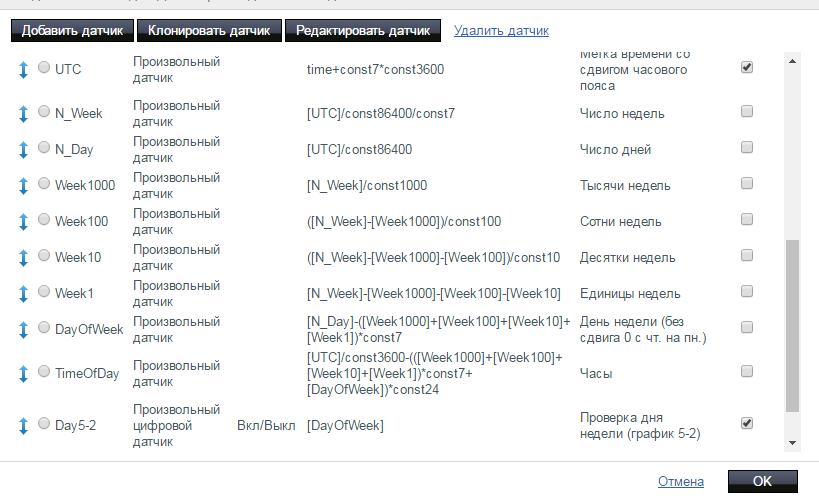 Появилась идея извлечения времени и дня недели из параметра time, который представляет метку времени unix и сравнение с эталонными значениями в произвольном цифровом датчике.