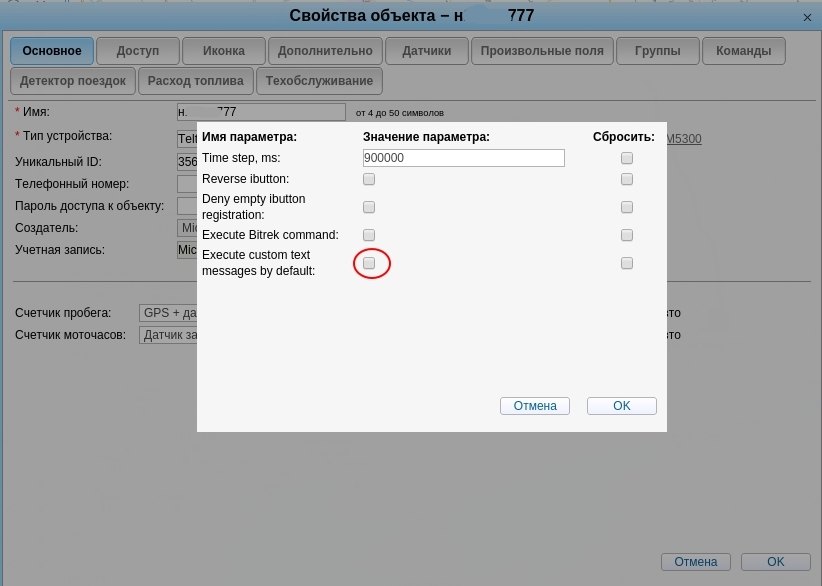 3. В Виалоне в основных свойствах обьекта указываем код доступа к обьекту. Для телтоники по умолчанию это два пробела.