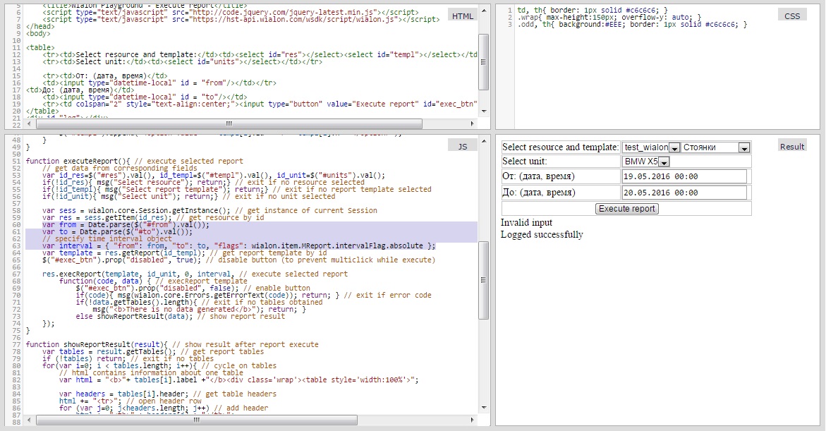 PS Если вы используете Playground, можно постить сразу ссылку на свой пример. Достаточно нажать кнопку Save вверху экрана и скопировать ссылку на форум (например, http://sdk.wialon.com/playground/lQdWaZpG/1)