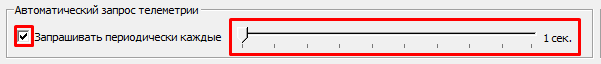 - В конфигураторе есть возможность получать текущее показание всех датчиков. Для этого необходимо включить автоматический запрос телеметрии, установив периодичность автоматического запроса данных и флаг "Запрашивать периодически каждые". На рисунке пример автоматического запроса телеметрии 1 раз в 1 секунду (смотрите вложение).