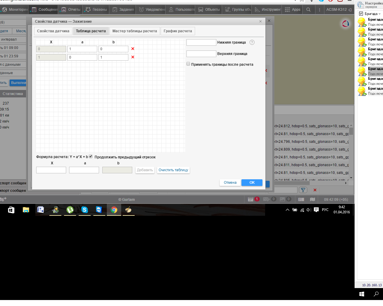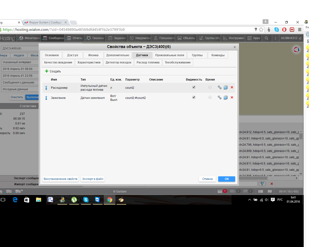 В Виалоне в расходе топлива ставится галочка на ДМРТ. Датчик ДМРТ - по параметру adc12 (для Телтоники - counter1), мастер таблицы расчета - 0-0 и 80-1(для DFM250) или 0-0 и 200-1(для DFM100). Датчик зажигания - по параметру adc12 (для Телтоники - counter1) без таблицы расчета.
