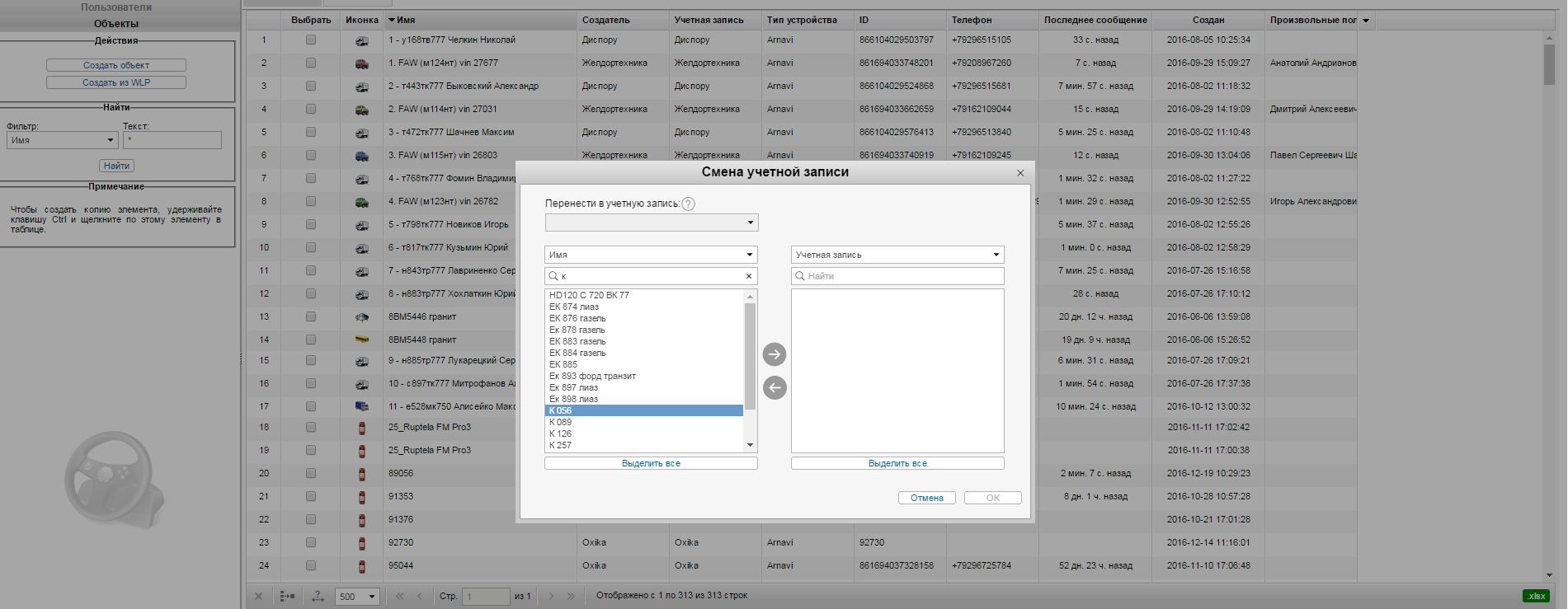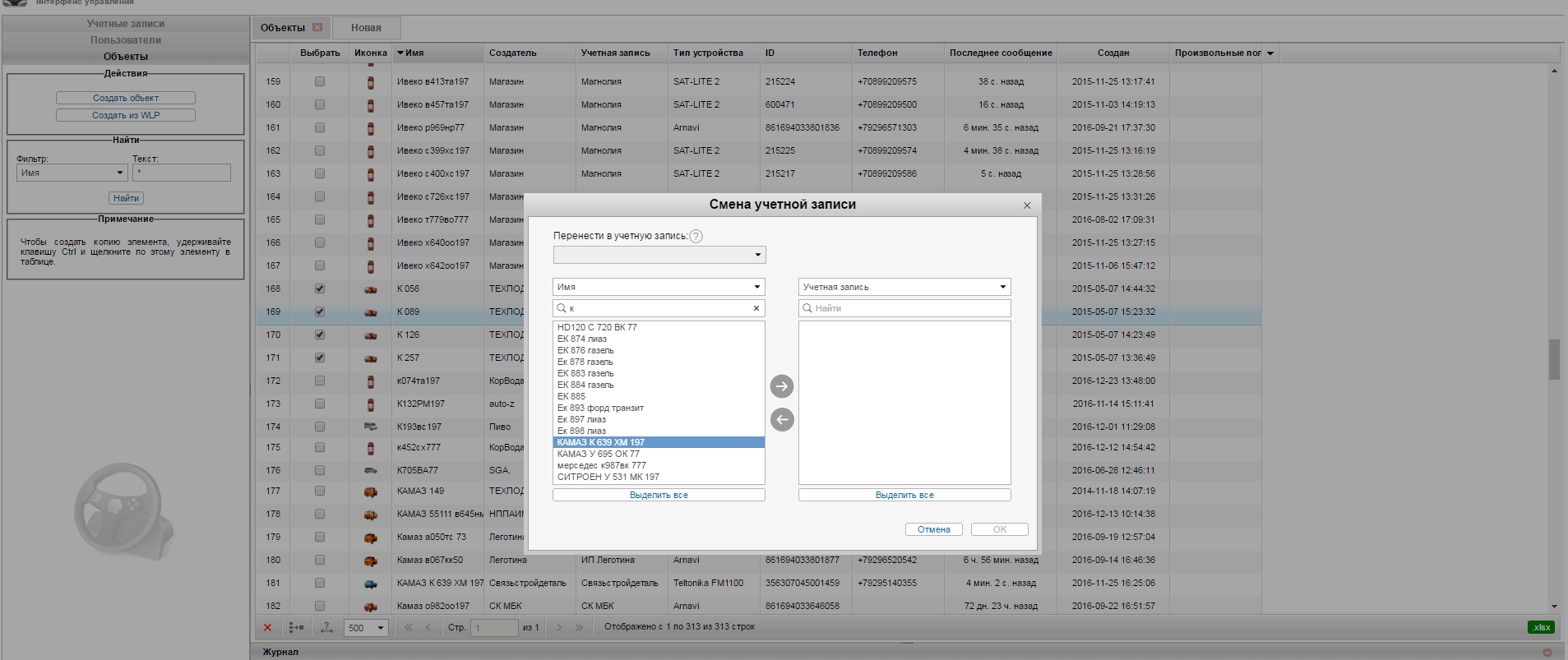 pod. Чтобы конкретно сказать чего не хватает, пришлите имена тех самых объектов и учеток, для которых нужно осуществить перенос (в личные сообщения или на support@gurtam.com)