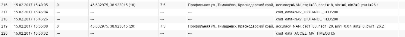 например, для седельного тягача, тягающего полуприцеп между соседними областными центрами, я бы советовал установить NAV_RUNNING_PERIOD в значение 60, а NAV_DISTANCE_TLD - в значение 200. но, ещё раз повторяю, настройка всех четырёх NAV-параметров зависит от типа и назначения техники на которую вы установите трекер. если вы не хотите, либо не имеете возможности настраивать прибор под каждый тип техники, то пользуйтесь, пожалуйста, заводскими параметрами.